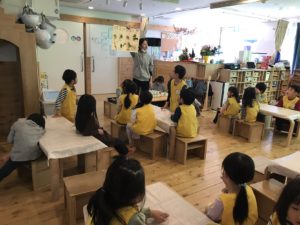 保育士の話しを真剣に聞いています