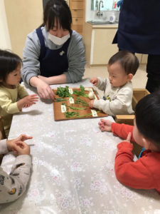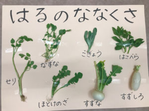 はぁもにぃ保育園でも給食室の先生が『春の七草』を準備してくれました🍃