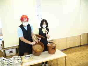 味噌甕2つを幼児さんの前で