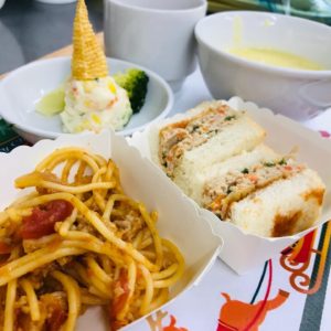 スパゲティとサンドイッチを