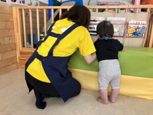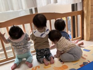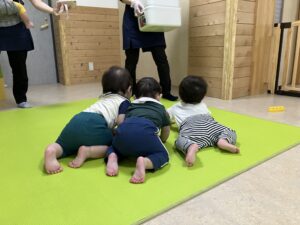 今日はかわいい後ろ姿を紹介したいと思います。玩具棚に玩具を片付けようとしていたところ、「新しいおもちゃだ!」と駆け寄ってきた子どもたち🤣素早い動きにびっくりです‼️「せんせいなにしてるのかな?」(種植えの準備中)ピタゴラスくっついた😊「せんせー、本読んで」