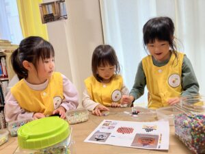 アトリエで、「アイロンビーズ」や「シルバニアファミリー」をやりたい!という、明確な遊びのイメージを持っているので、期待の高まりが子どもたちの行動や表情にあらわれていましたよ。