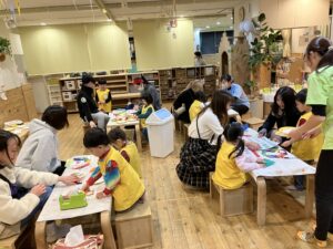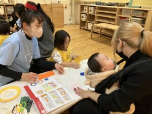 今日はかぜ組の保育参観。大好きなパパやママと一緒に活動できる喜びで、子どもたちは終始笑顔でした!